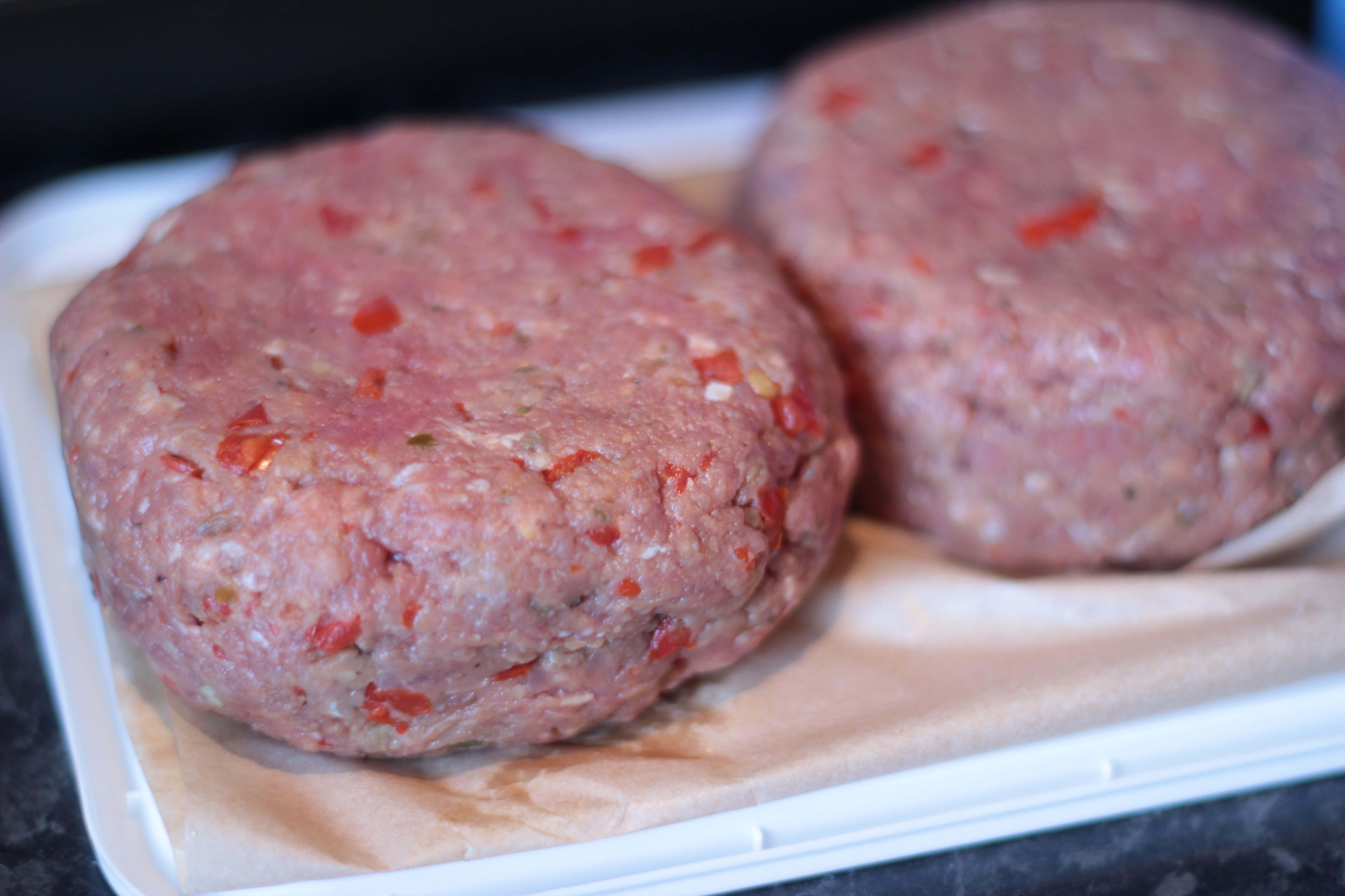 First, use a hand blender (or chop finely) to mix the jalapenos, piquantes, garlic, sweet chilli sauce and herbs (take care not to add too much or it’ll kill the flavours in the meat). Leave them still slightly chunky so that you get a bit of texture; you don’t want to make it into a puree. Then, put it in a bowl with the meat and get your hands dirty. Make sure the meat has absorbed pretty much all of your mixture and ensure that both meats have been well mixed together. We elected not to use lean mince so as to avoid the need for a binding agent.