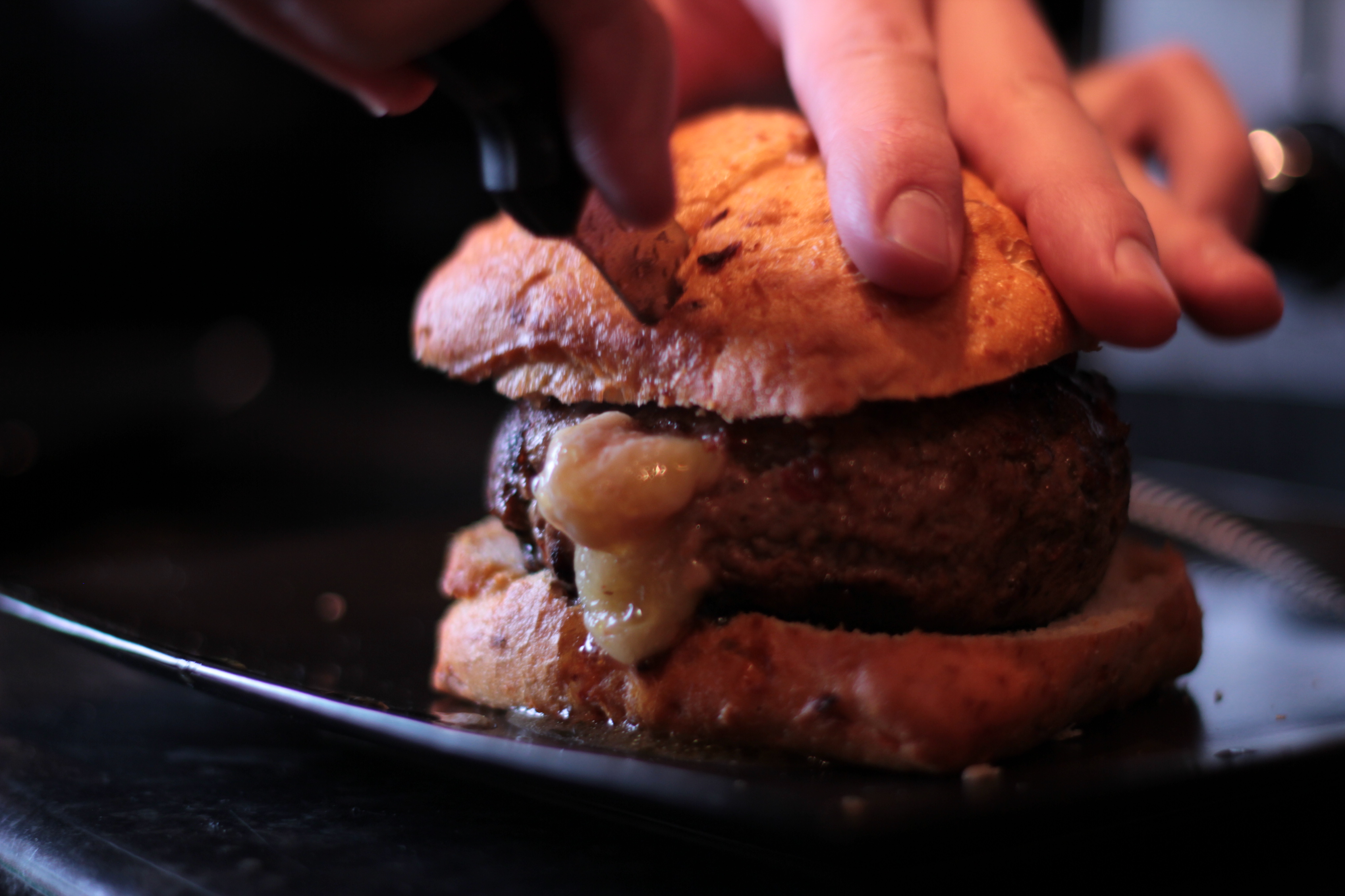 The Astro Burger consists of a 50% lamb, 50% beef patty, infused with picante peppers, jalapenos, garlic and various herbs, containing a disc of smoked applewood and topped off with a homemade sweet balsamic beetroot relish on a red leicester and onion bun.