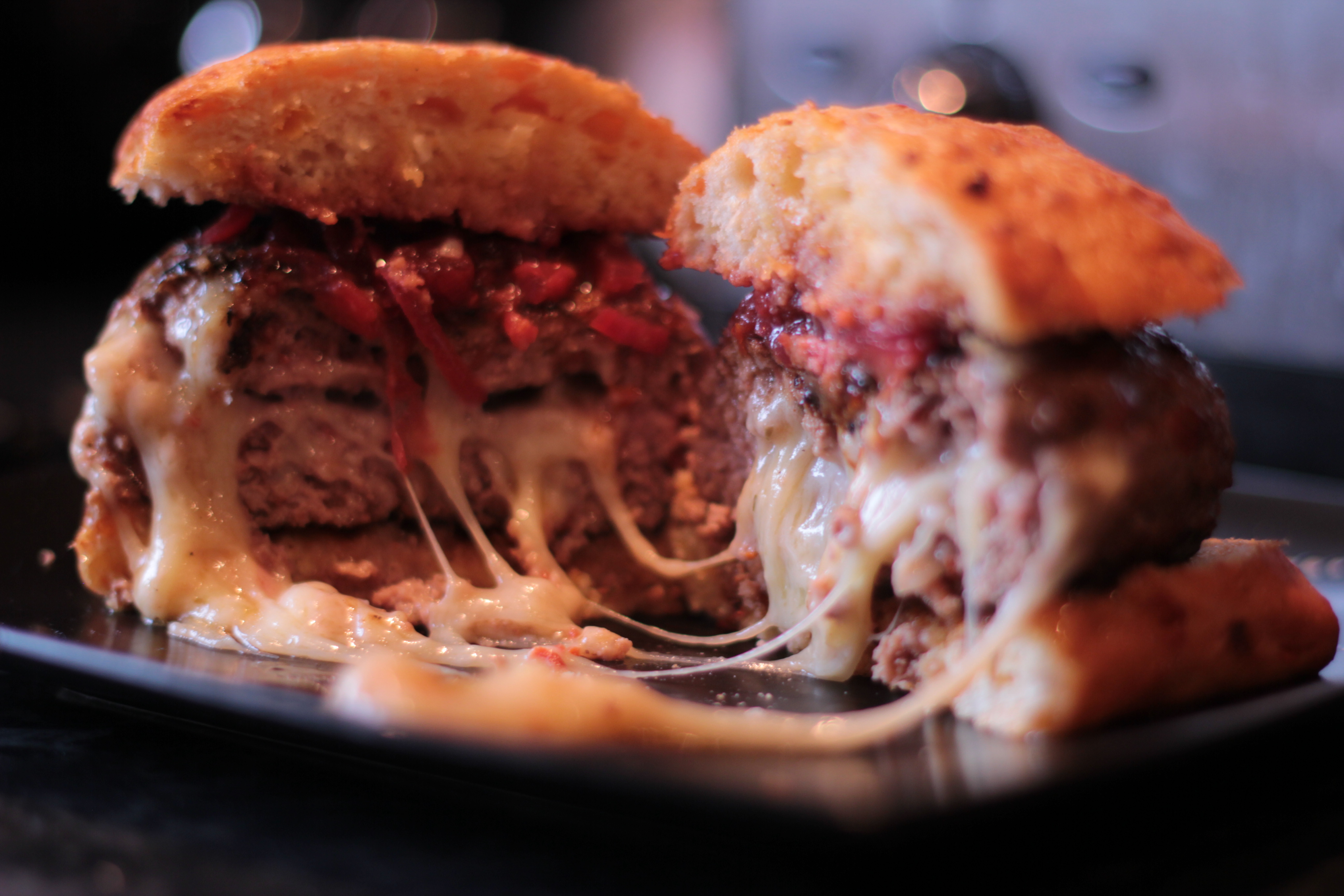 The cheese oozed out of the middle as the patties were placed on the bun.
