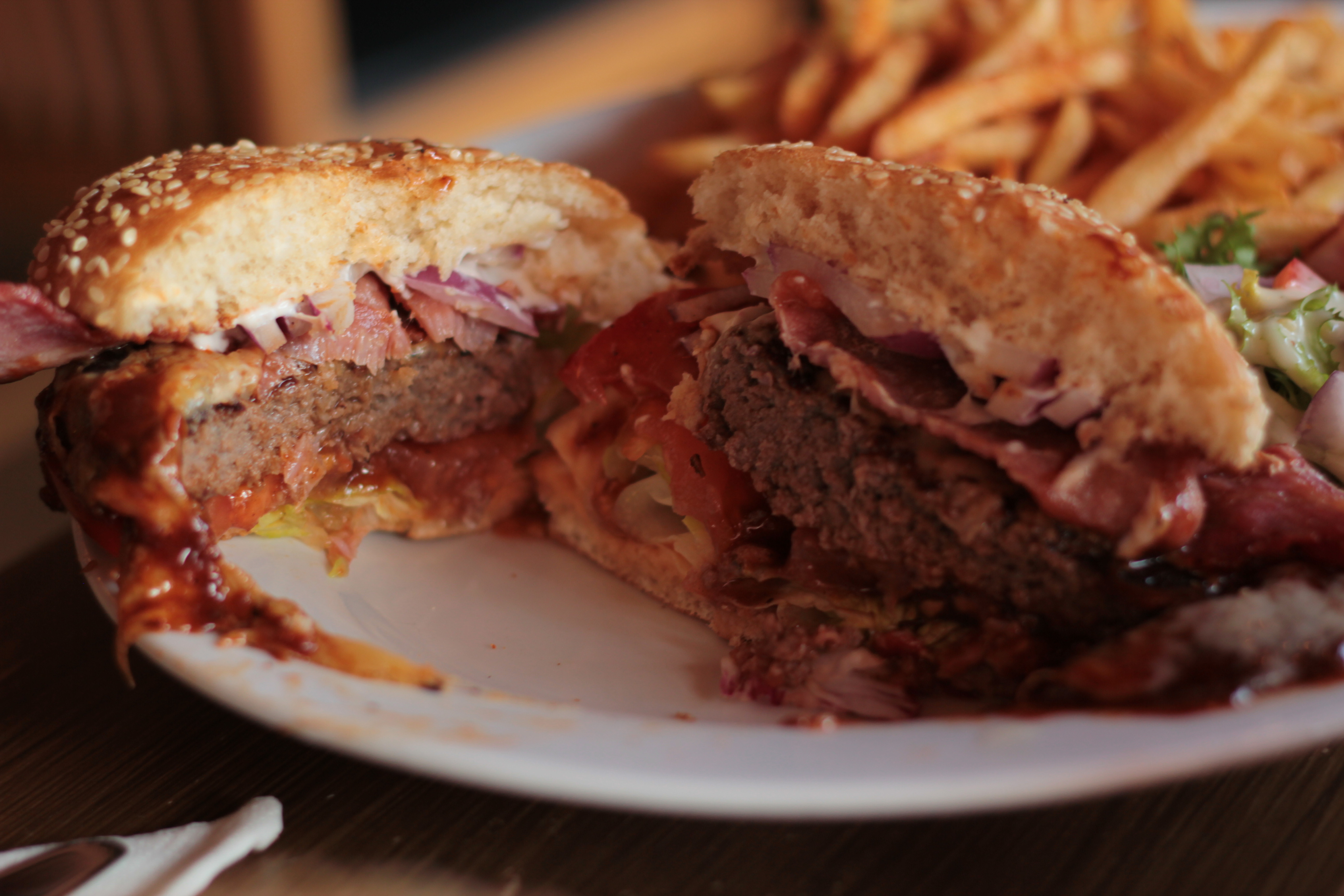What I really liked about this burger was the fact that it was a big, messy and equally tasty affair. I love when a burger is put down in front of me that makes me think ‘Oh my god!’ and this one did just that. I don’t believe that a good burger can only be made up of meat and cheese in a bun and it’s always good to see a chef get a little creative. There was so much food on my plate, that even after finishing the burger and half of the fries and salad, I still felt like I was sending back an entire plate of food almost, but this is what sets Tribeca apart from most other cafes that you’ll visit in Glasgow. Tribeca’s head chef David Horne describes their food as ‘very memorable’ and ‘in your face’ and it couldn’t be a more accurate description. The Bolt burger was big and the patty extremely juicy. The addition of the cheese, bacon and salad only helped enhance the intense beef flavour and the reggae reggae sauce was enough to give it a spicy kick without detracting from the overall taste.