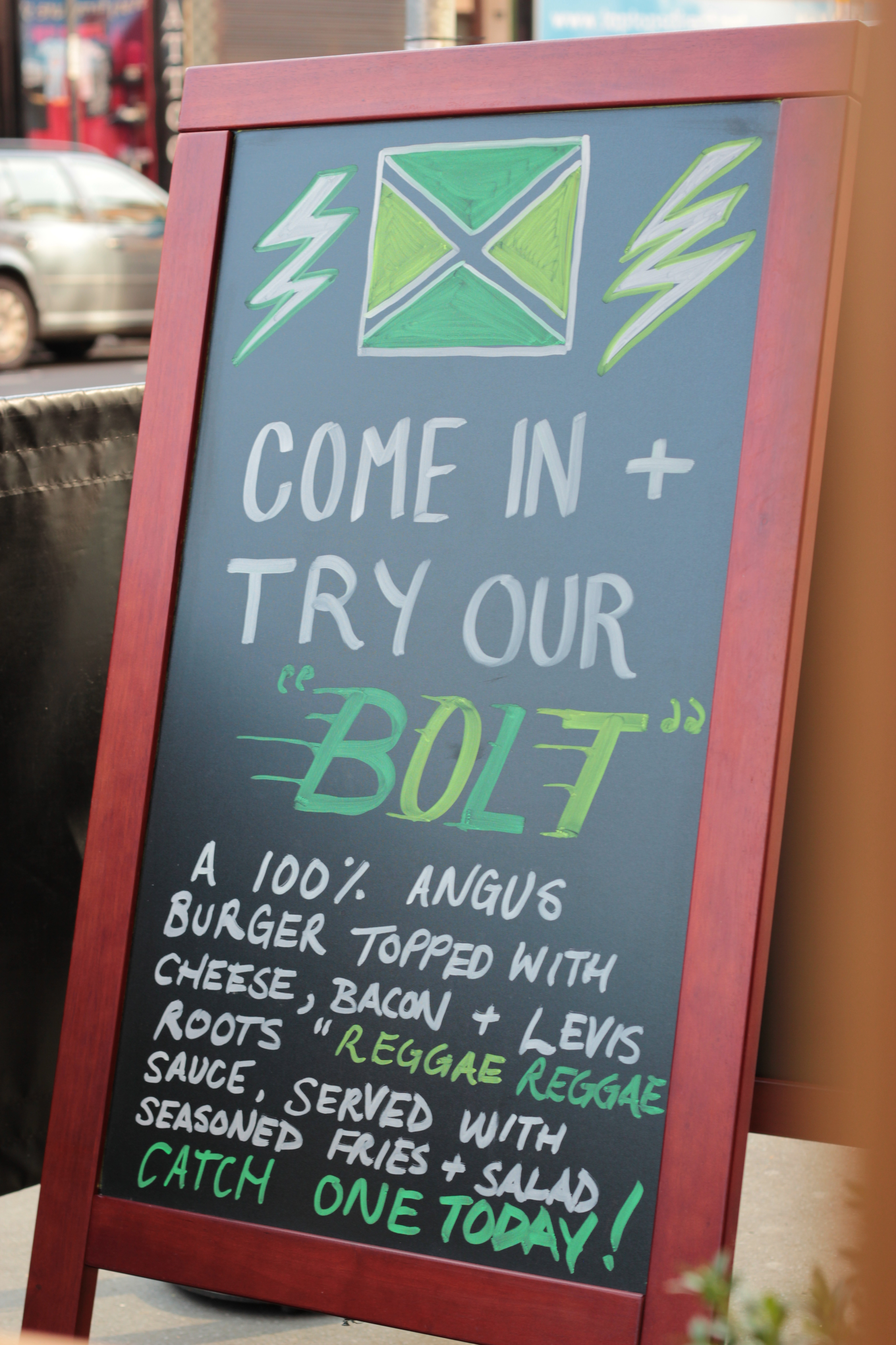 We had heard that Tribeca were offering up a burger to mark Usain Bolt’s outstanding performances at the Olympic games and since the games were coming to an end, we had to try it before it was all gone.
