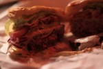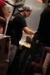 On to the food itself, we opted for cheeseburgers cooked medium rare and topped with ‘the works’. Cutting into the burger, it was clear that the guys at Burger Joint take the quality of the meat and how it’s cooked very seriously. Our patties were perfectly pink in the middle and charred on the outside and juicy throughout. The bun was a no frills burger bun and it wasn’t the biggest burger in the world; however, we did notice throughout our trip that New Yorkers have gone back to basics when it comes to burgers. The most loved burgers in the city are the simplest ones and if you are looking for a great quality, good old fashioned cheeseburger, you’ll certainly find it at Burger Joint. Our burgers were topped with lettuce, cheese, mustard, sliced pickles, ketchup and mayo – just about everything you’d expect to find on a classic cheeseburger. The cheese was perfectly melted and stuck to the sides of the white paper wrapper and allowed the other toppings to melt together to create one of the best burgers I’ve ever tasted. As stated, the bun is a simple, no frills affair but it’s all about the patty at Burger Joint. As we chowed down on our food, we watched the guys in the kitchen take orders, hand-make the patties and cook each one with care. Between the sounds and smells coming from the kitchen, which is located directly behind the order counter and the taste of our food, we were in burger heaven.
