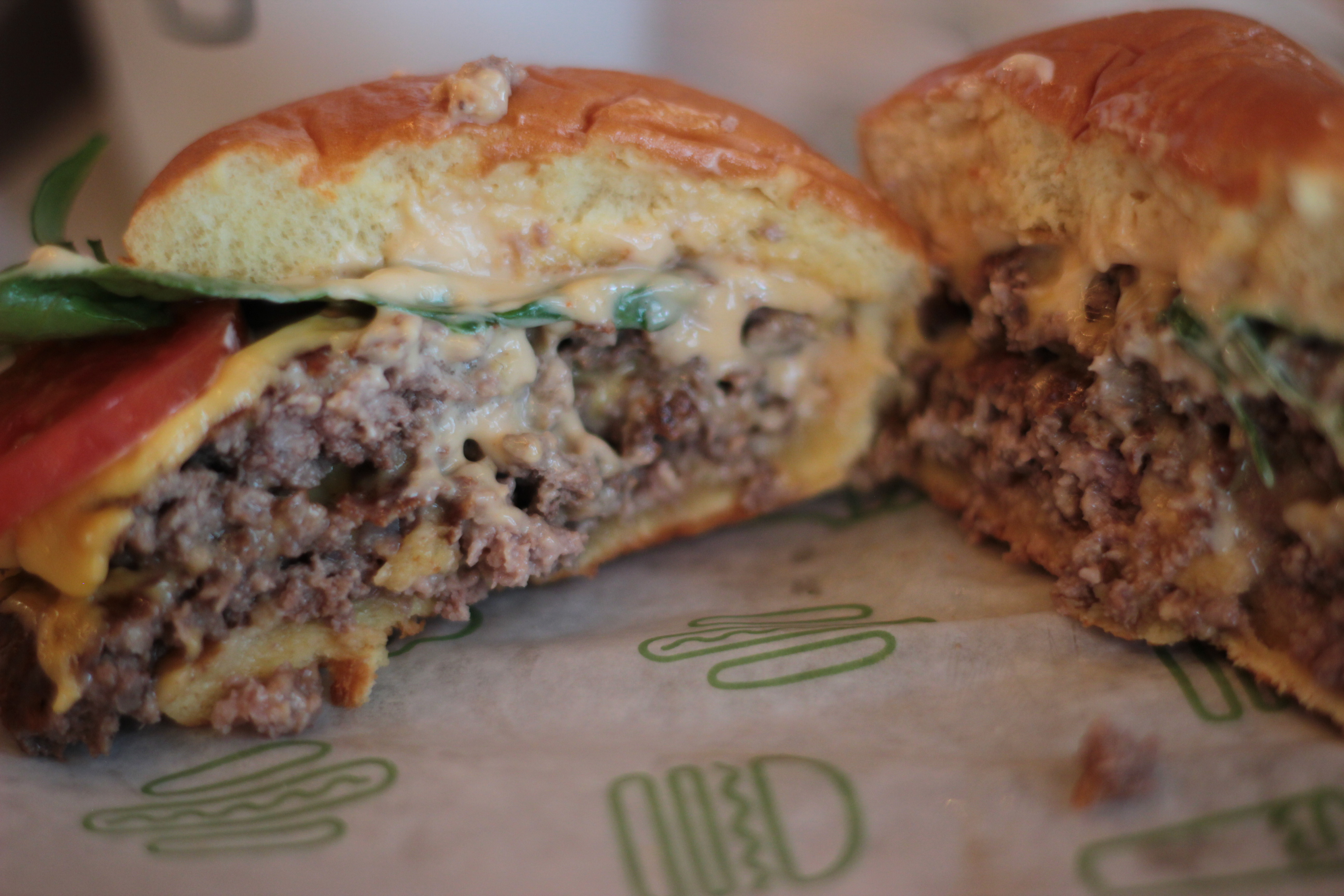 On to the burger itself, we opted for the double shack burger – a double cheeseburger topped with lettuce, tomato and Shake Shack’s secret ShackSauce. The first thing I noticed before I even took a bite of my burger was the sight of a McDonald’s restaurant across the street. Shake Shack could be described as premium quality fast food and I wondered how it would compare to the fast food burgers I was used to.