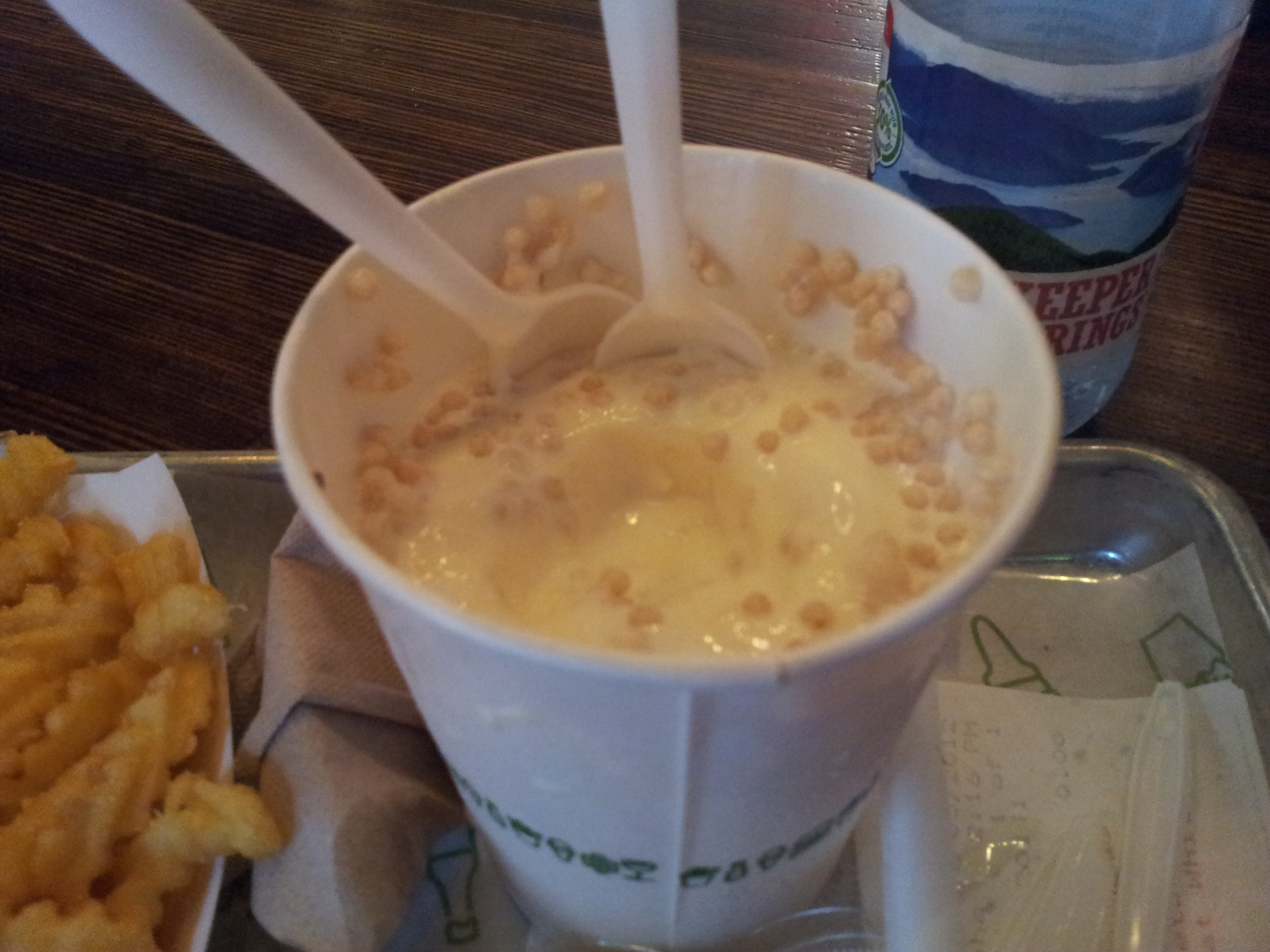 Price: $7.10 (fries $2.65 extra, frozen custard shakes/concretes $5 – $7)
