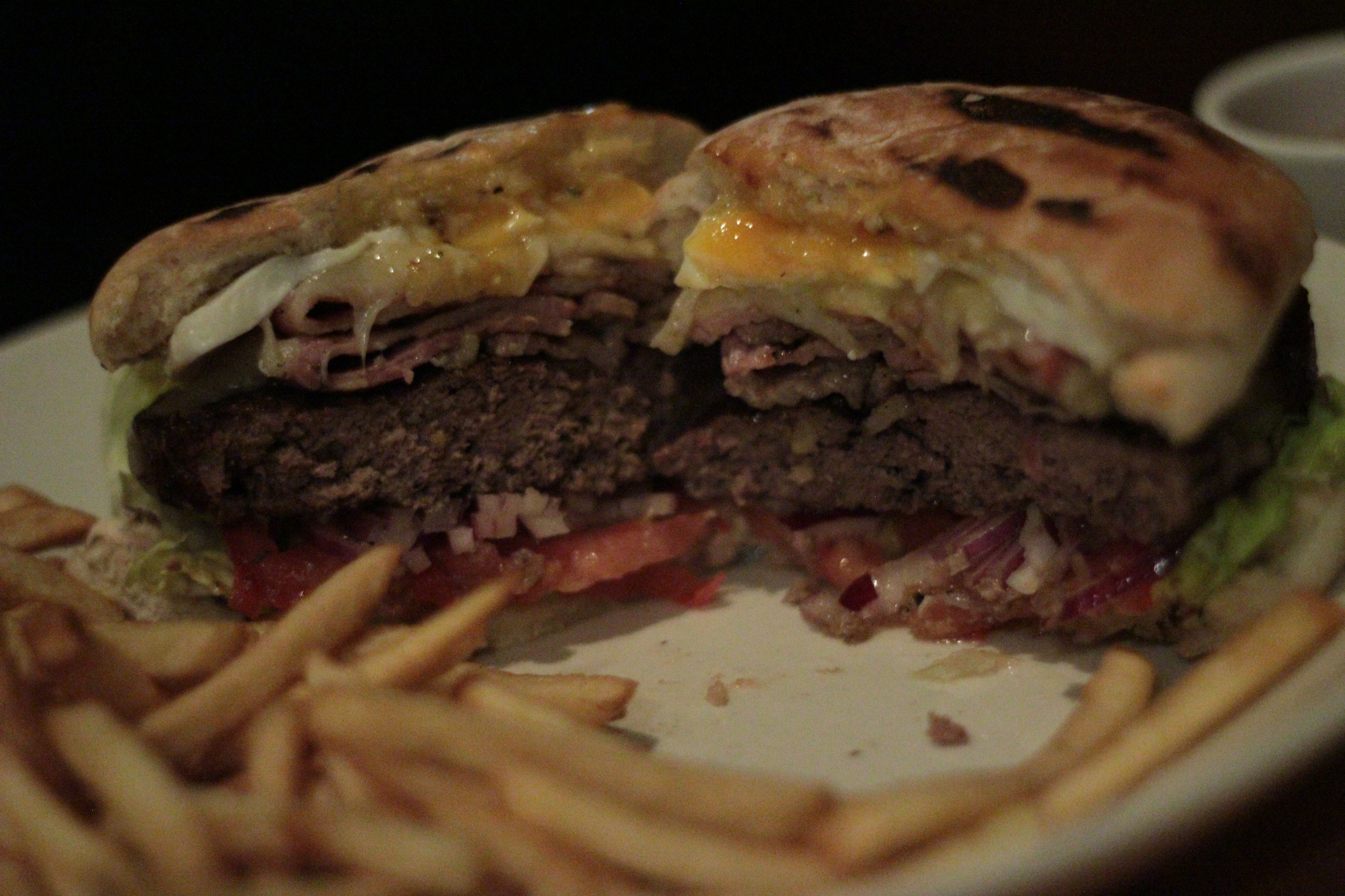 The burger comes served with a large portion of skinny fries; however, the burger is so big that I struggled to eat it all, especially with the added toppings.