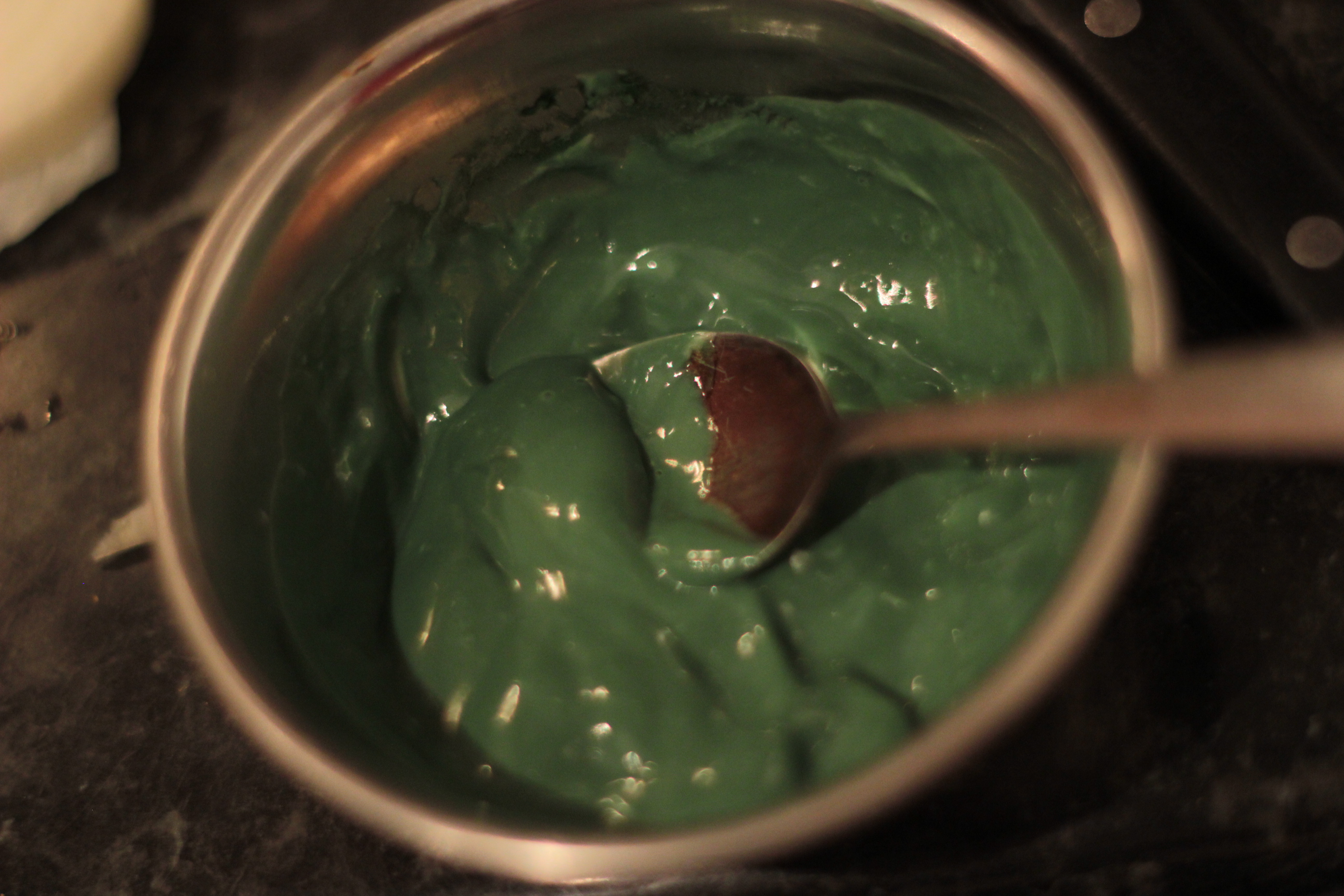 Once ready, we took the buns out of the oven and left to cool. Once they had cooled, we used the green food dye to turn our mayo green and used the top from our scotch bonnet pepper for decoration.