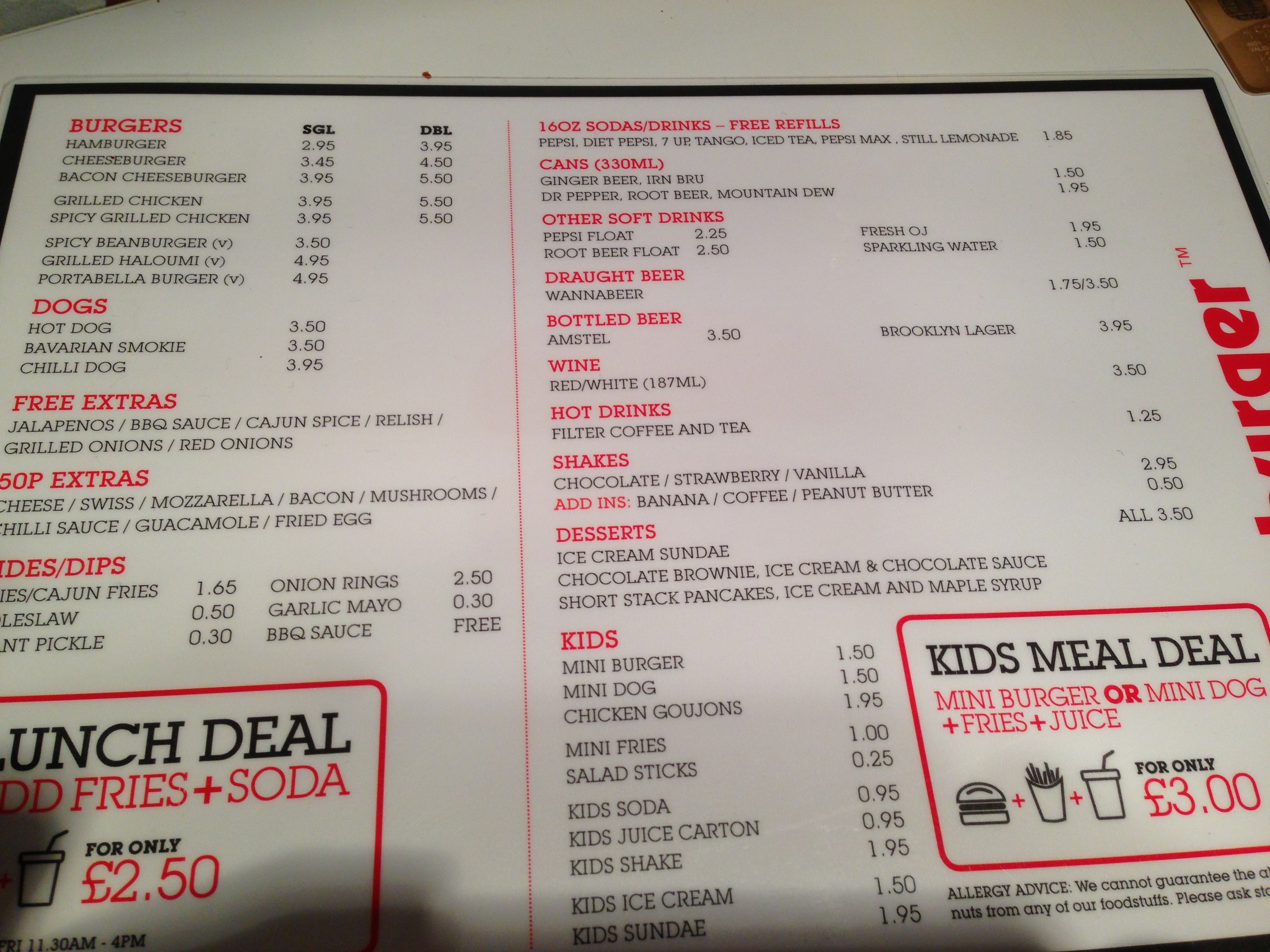 Wannaburger is very reminiscent of a typical fast food outlet, but the fact that there isn’t one on every high street in the country makes it all the more appealing. There’s a mix of booths, high tables or tables with a view, if you’d prefer to sit by the window. Everything is decorated in red, white and black colours and the low hanging lights and big screens showing US sports really set it apart from your typical McChain.