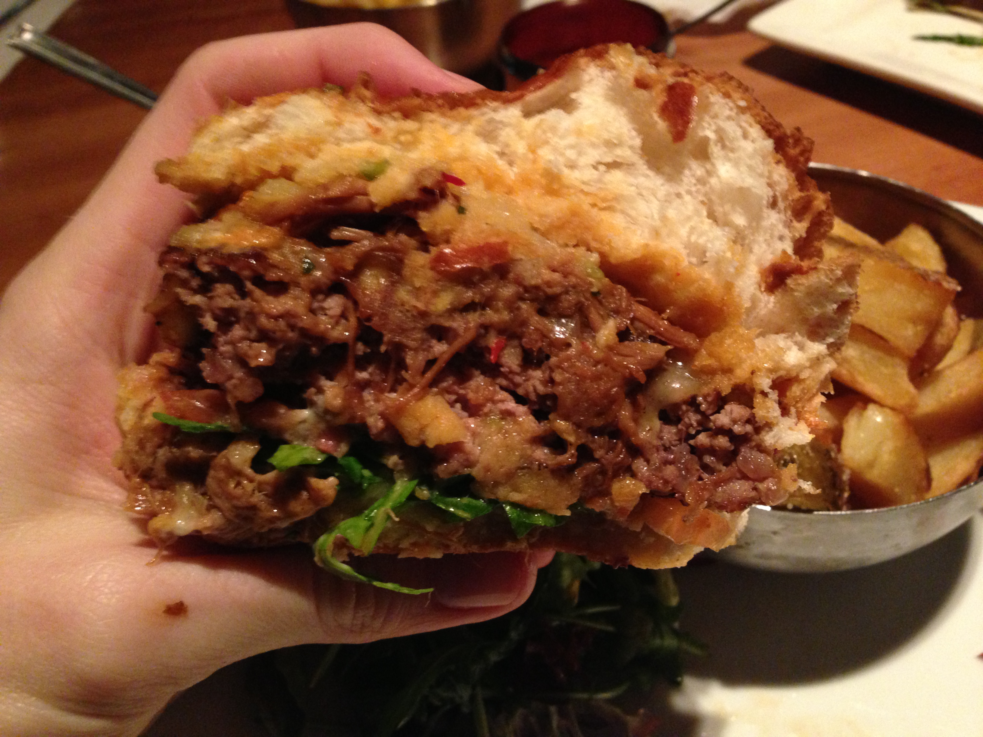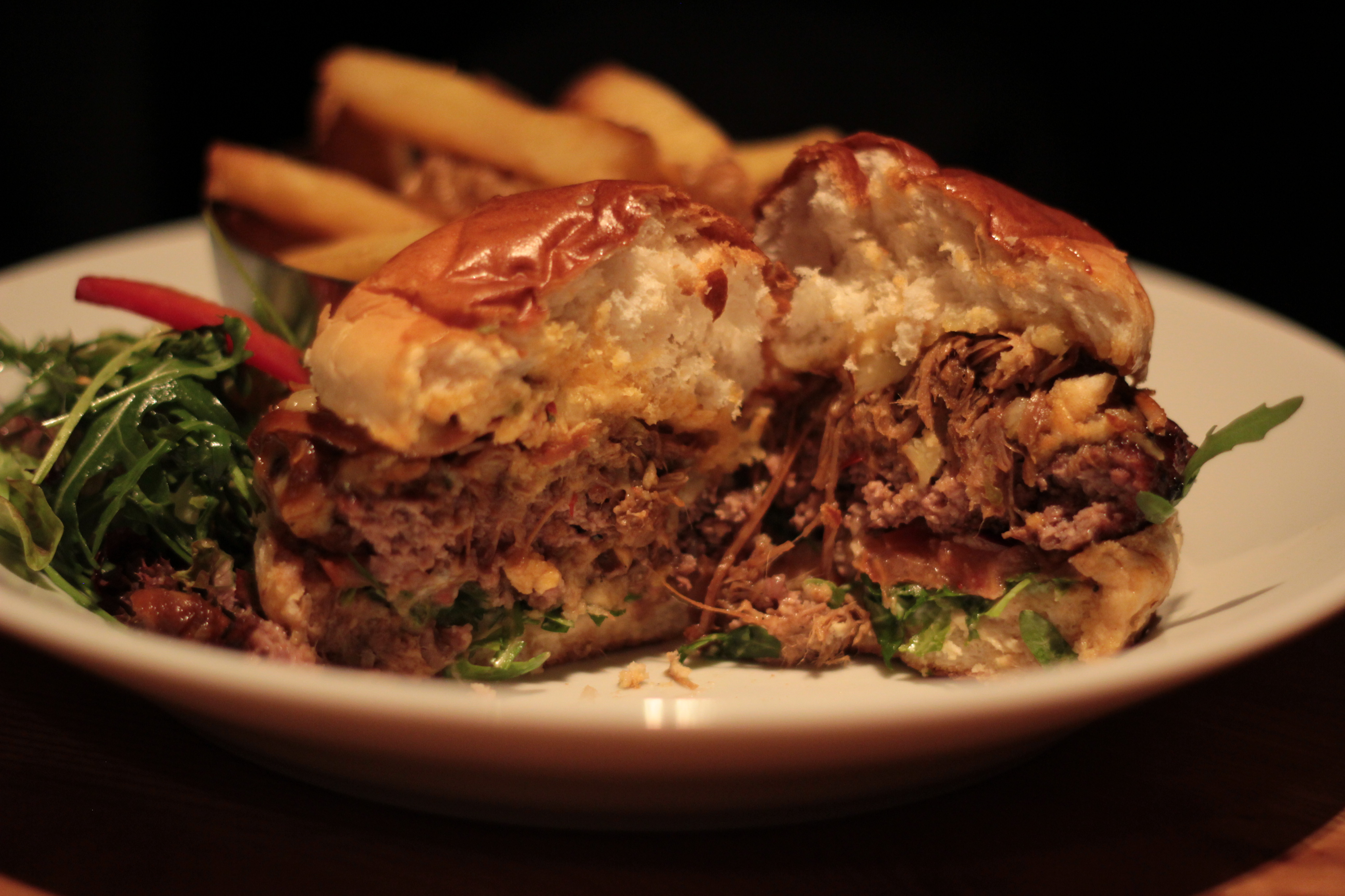 Presentation-wise, this burger was seriously impressive. The patty was big and looked juicy and the pulled pork and BBQ sauce oozed from the sides. The brioche was nicely glazed and well toasted which gave the presentation a nice finish.