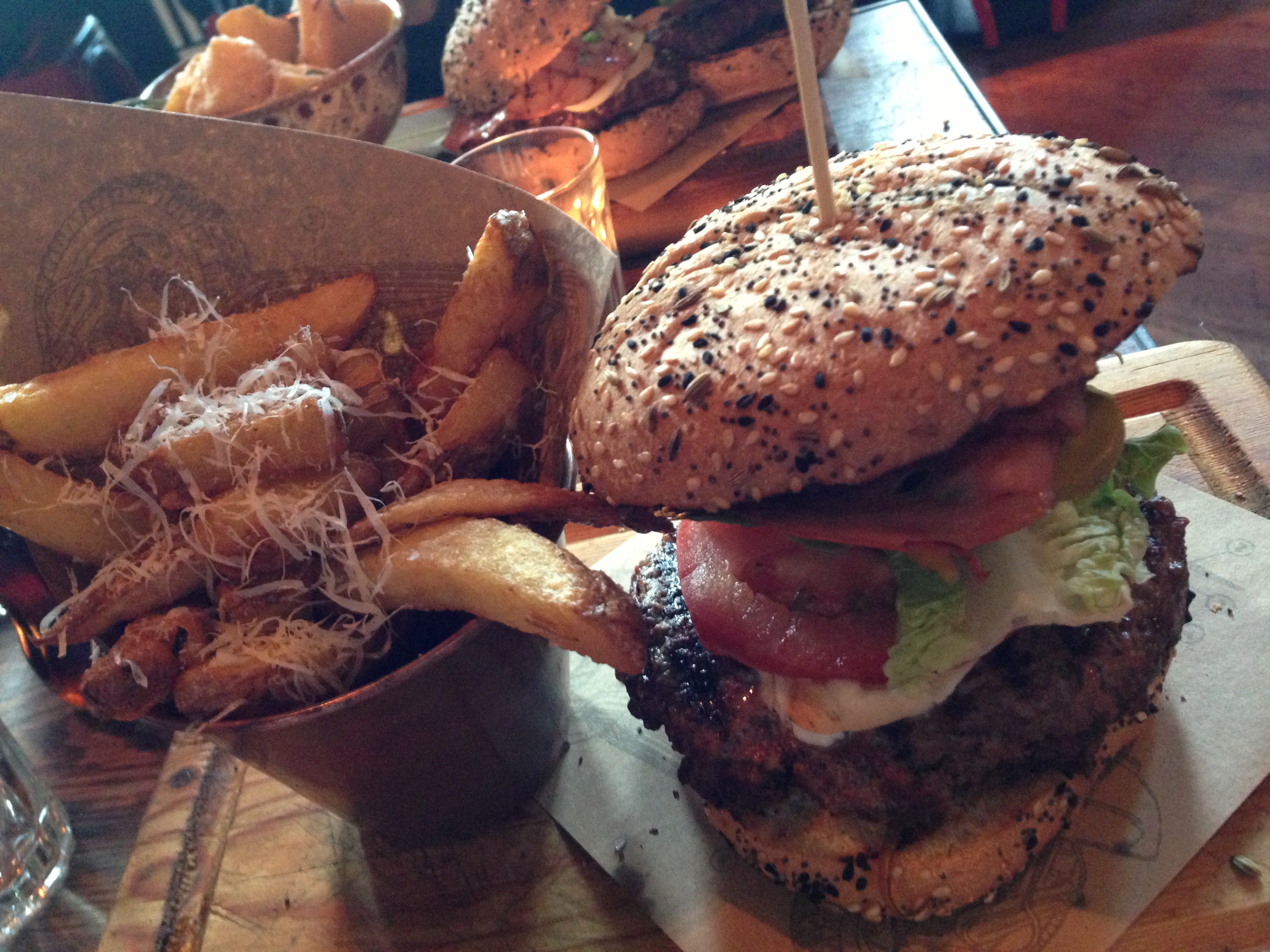 The main issue with this burger was that it was topped with too many things that just didn’t really work well together. The chilli added some spice, but the balsamic onions and the pickles counteracted this to the point where it just felt like there was too much going on, and not in a good way. There was also next to no smoked cheese on either of our burgers, to the point where I actually thought they had forgotten to add it, until I eventually found a small amount underneath the mortadella. Speaking of the mortadella, it was delicious! It was fried, crispy and full of flavour, but again, it didn’t really work well with the rest of the ingredients. Individually, there were a lot of things I liked here in terms of flavour. The mortadella was good, the chillies were good and the patty was well cooked, if a bit bland. Together; however, it just didn’t work.
