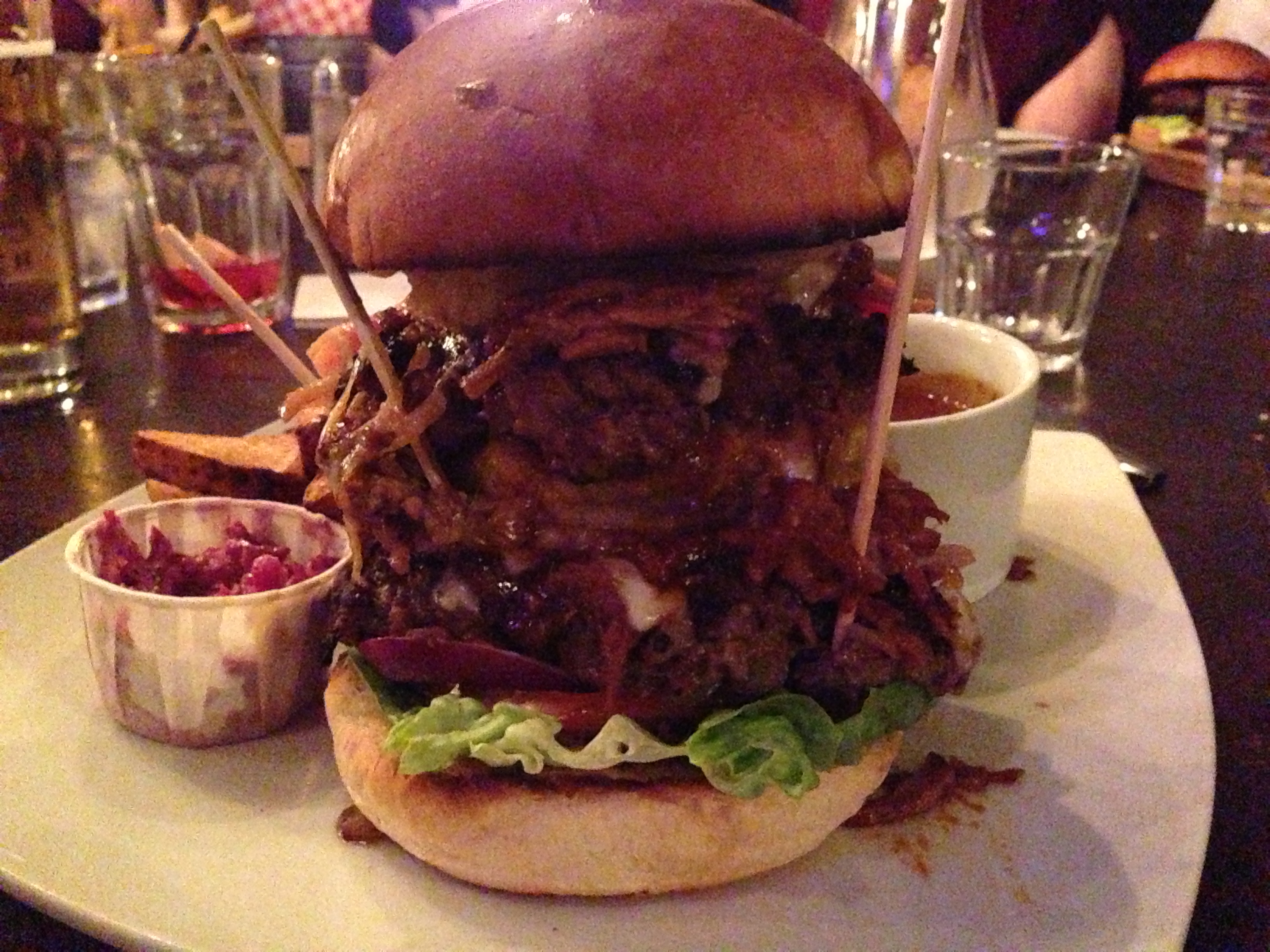 Be warned, this is a BIG burger. Ridiculously big, in fact. It’s not going to be for everyone, especially if you make it even bigger by adding the pulled pork (we’ve been referring to it as the ‘Big Greedy B’ in the office). The debate over big burgers vs. burgers that you can hold in one hand continues to rage on over on our Facebook page and people seem to be torn down the middle on which type they prefer. To be perfectly honest, we like both. We agree that the perfect burger is one that you should be able to easily pick up and eat without having to dislocate your jaw and not have to worry about using a fork to scoop the contents from your plate. Despite that, there are times when a big, monstrous, messy beast of a burger just can’t be beaten and I was well aware of what I was ordering when I asked for the Greedy B. It was messy and some of the contents did fall out of the bun as I ate it, but that’s the type of burger I wanted on that particular night. Yes, it had a few cocktail sticks wedged through it in order to hold it together, but that was really due to me adding the pulled pork (there was a LOT of it). Despite some of the contents falling out of the burger, the bun itself didn’t break apart, tasted much better than the old, flat effort and gets a big thumbs up from us.