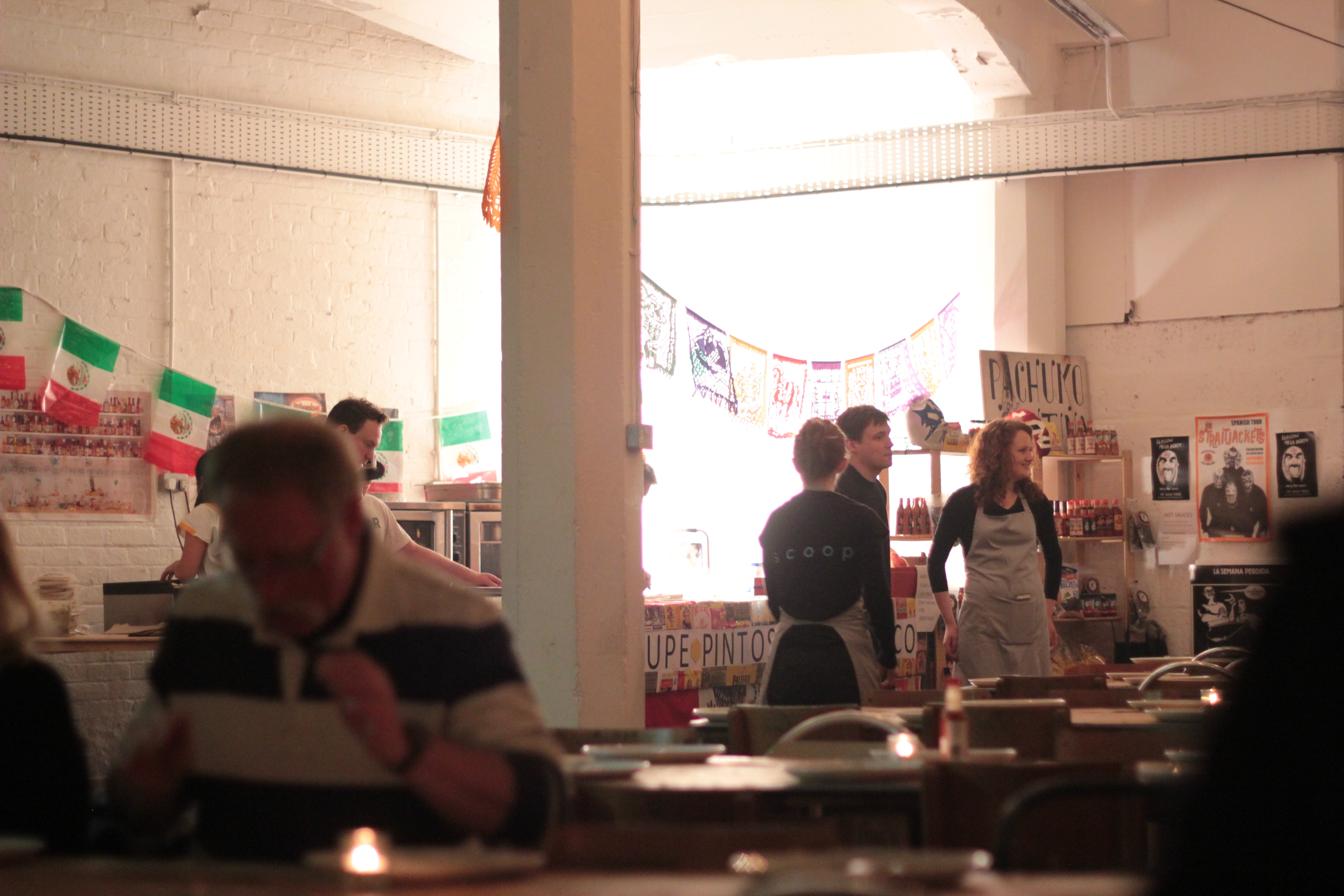 Street Food Cartel 2 once again took place inside the SWG3 building in Finnieston, as a result of Glasgow City Council making it increasingly difficult for street food to actually hit the streets in our fine city. The set up was much the same as the first event, with both Scoop’s now easily recognisable food truck and Lupe Pinto’s preparation station set up at the far end of the room, with rustic, mis-matched plywood and chairs lining the rest of the space. The tables do get a little cramped and I did find it a little off-putting as the people next to us (who arrived later) sat and watched us eat as they waited for their own food to arrive. Once everyone had their food and the event was in full swing; however, this wasn’t really an issue. As we said in our previous review, we’re fans of the set up and the whole look and feel of the event and we’re glad that it was largely unchanged from the first event.