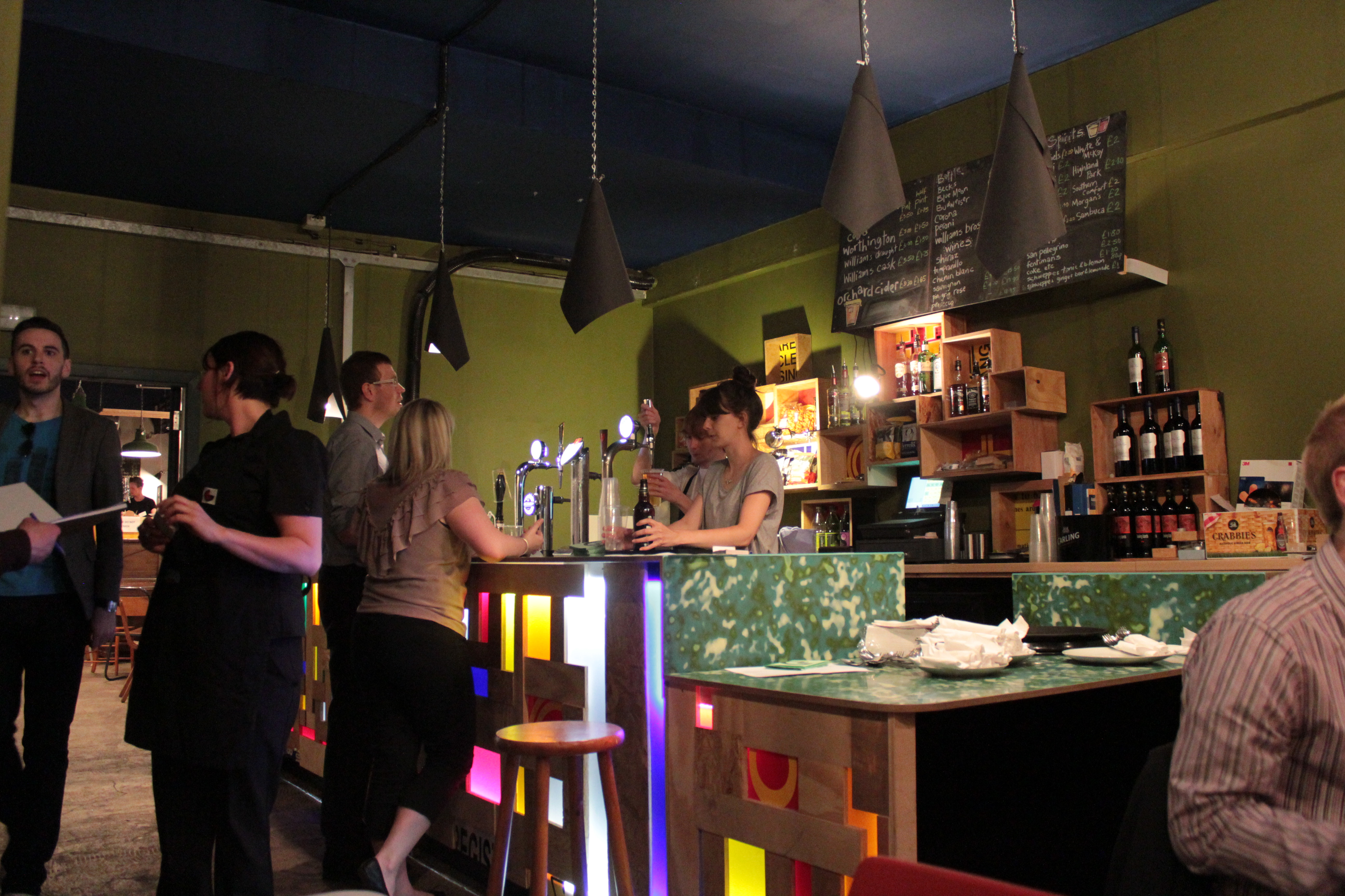 The event took place inside the venue area of the Glad Cafe, accessed through a set of double doors beyond the cafe.