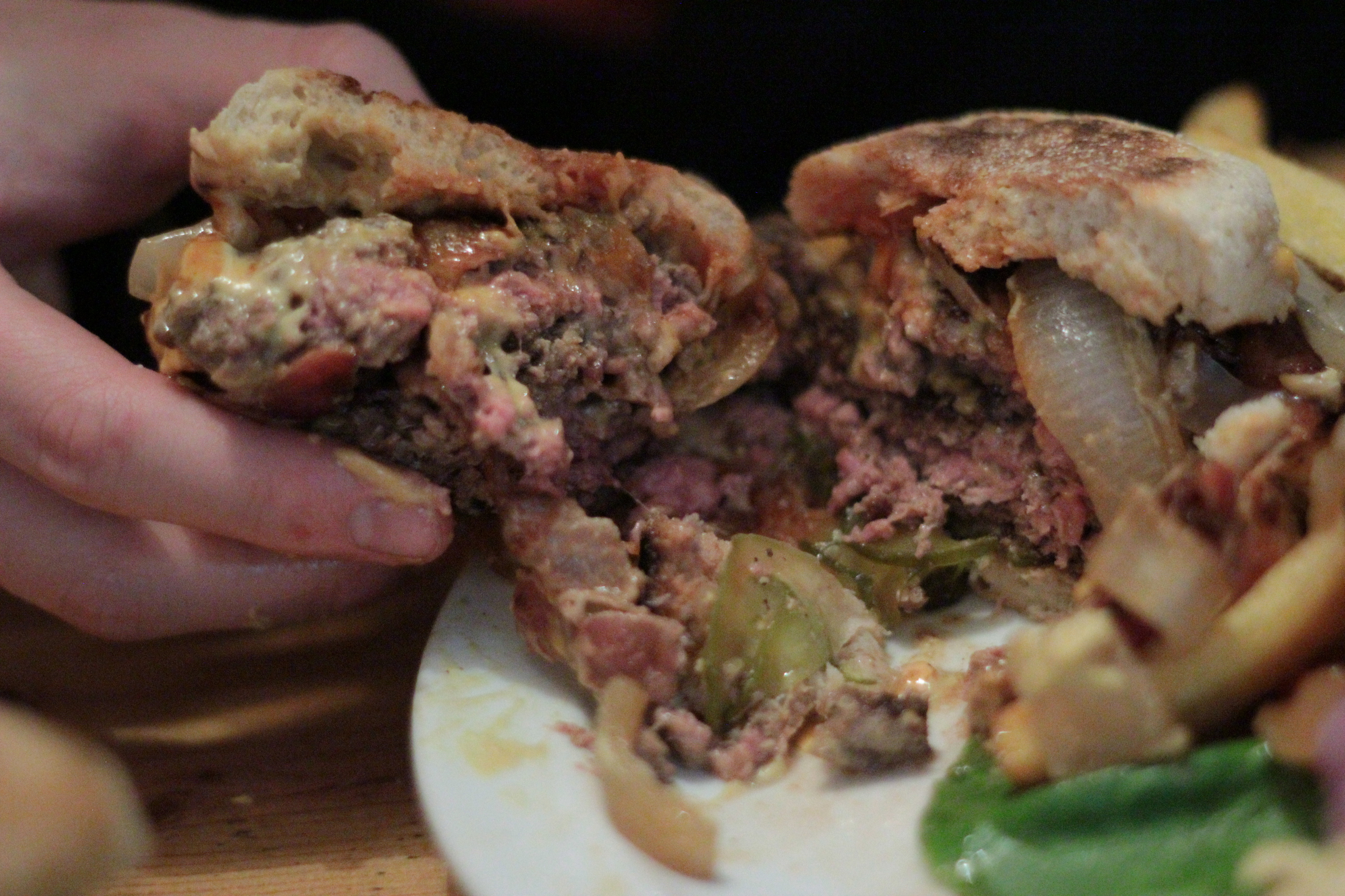 Presentation-wise, both this burger and ‘Da Woiks’ burger looked jaw-dropping, but more in a ‘what the heck IS that and where’s my burger?‘ way. As soon as these burgers are put down in front of you, your first thought is going to be ‘how am I going to eat this?!‘