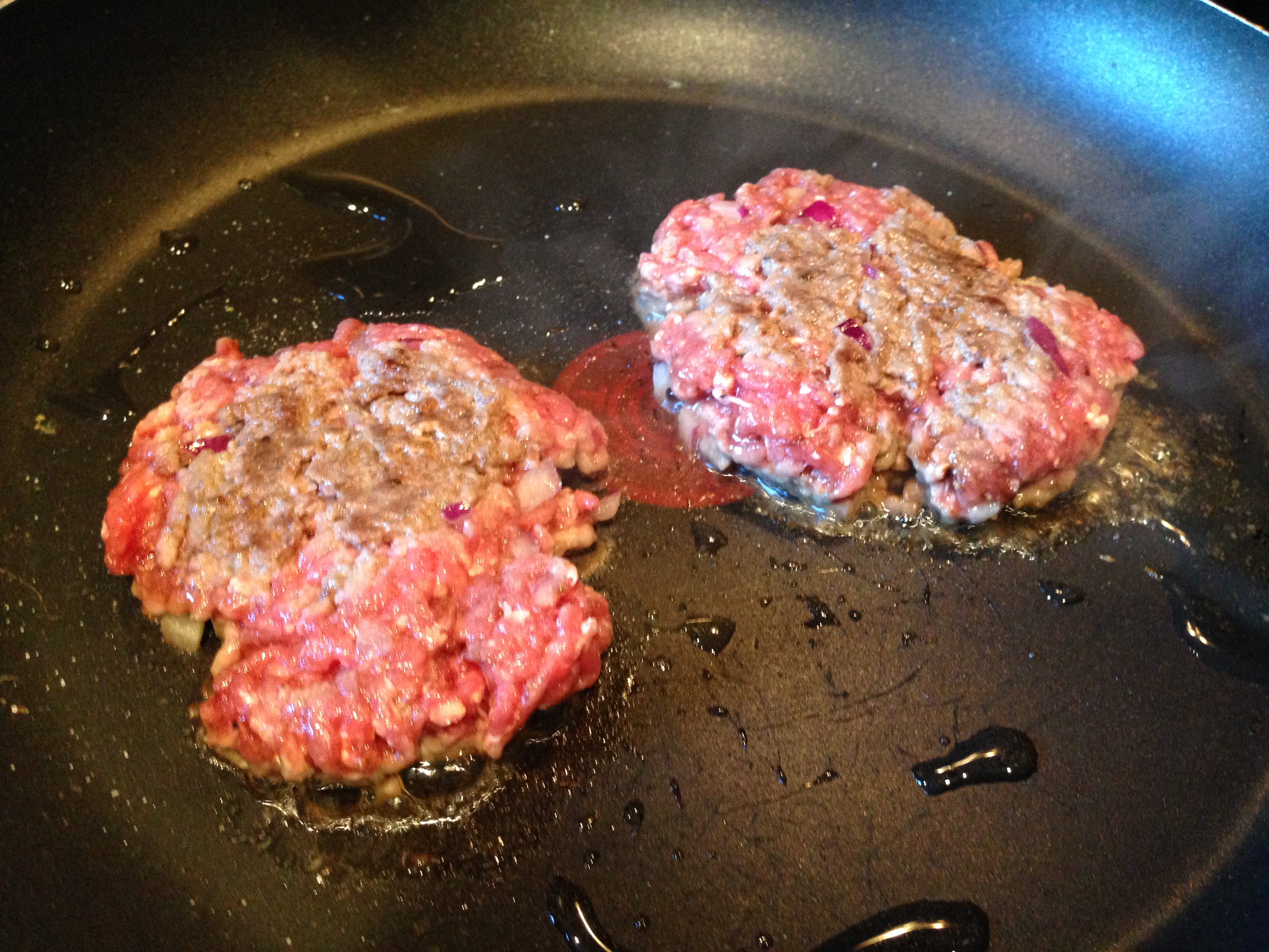– Sprinkle salt on the top side of the meat only. Place each ball of meat into the hot pan (salt side down). Cook for around one minute.