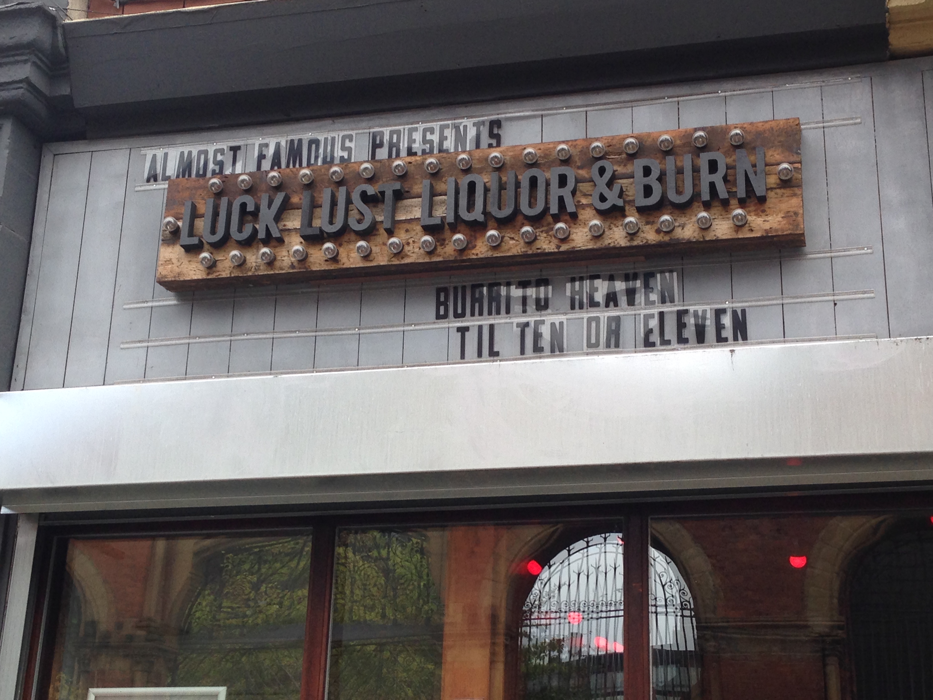 Thankfully, Manchester wouldn’t be without Almost Famous for long, with the announcement that their burgers would be served from the nearby Lust Luck Liquor & Burn while the original is rebuilt and re-opened. With that in mind, we decided to stop by for a burger lunch during a recent trip to Manchester to see the NBA. Unfortunately, we forgot our trusty camera, so had to make do with mobile phone photography, so we apologise for these photos not being up to our usual standard.