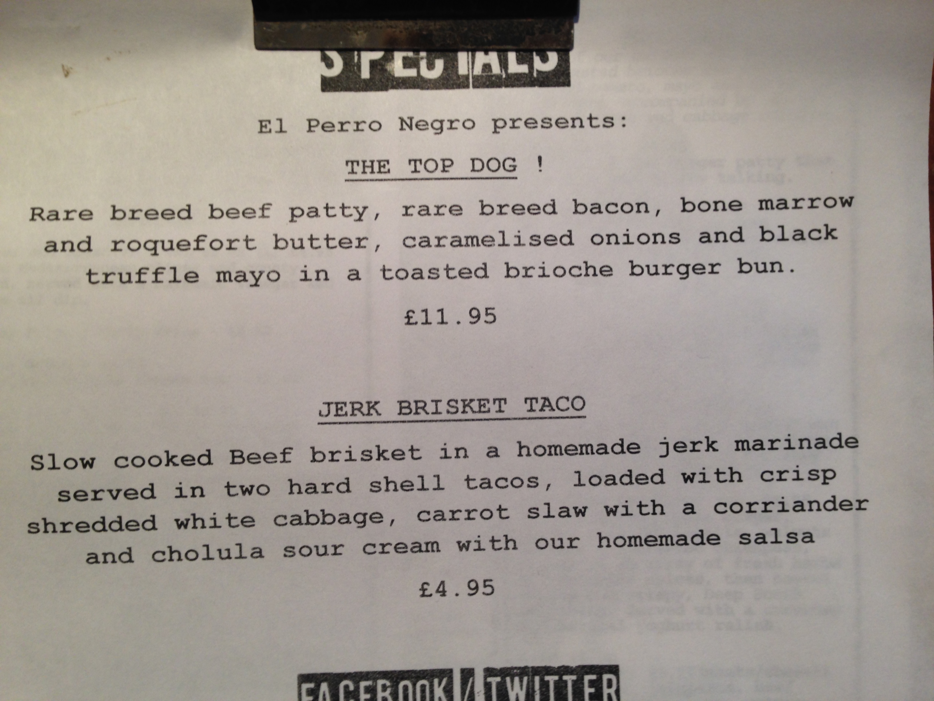 El Perro Negro is the brainchild of self-taught chef Nick Watkins. Nick is actually no stranger to James vs. Burger; in fact, he’s been posting photos of his homemade meals over on our Facebook page for a couple of years now. His photos have always been met with positive feedback from the James vs Burger team and the rest of the community and it’s great to see that food now making an appearance in Glasgow for us all to try. We’re not sure if Nick decided to start his own business based on the great feedback he received from other readers on James vs. Burger’s Facebook page, or if it’s something he’s been planning for years, but whatever the reason may be, we’re glad that he did. From reading his Twitter account, it would appear that a permanent street food location or set up of some kind may be in the works, but this particular pop-up event took place at Bar Bloc on Bath street.