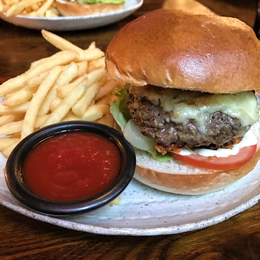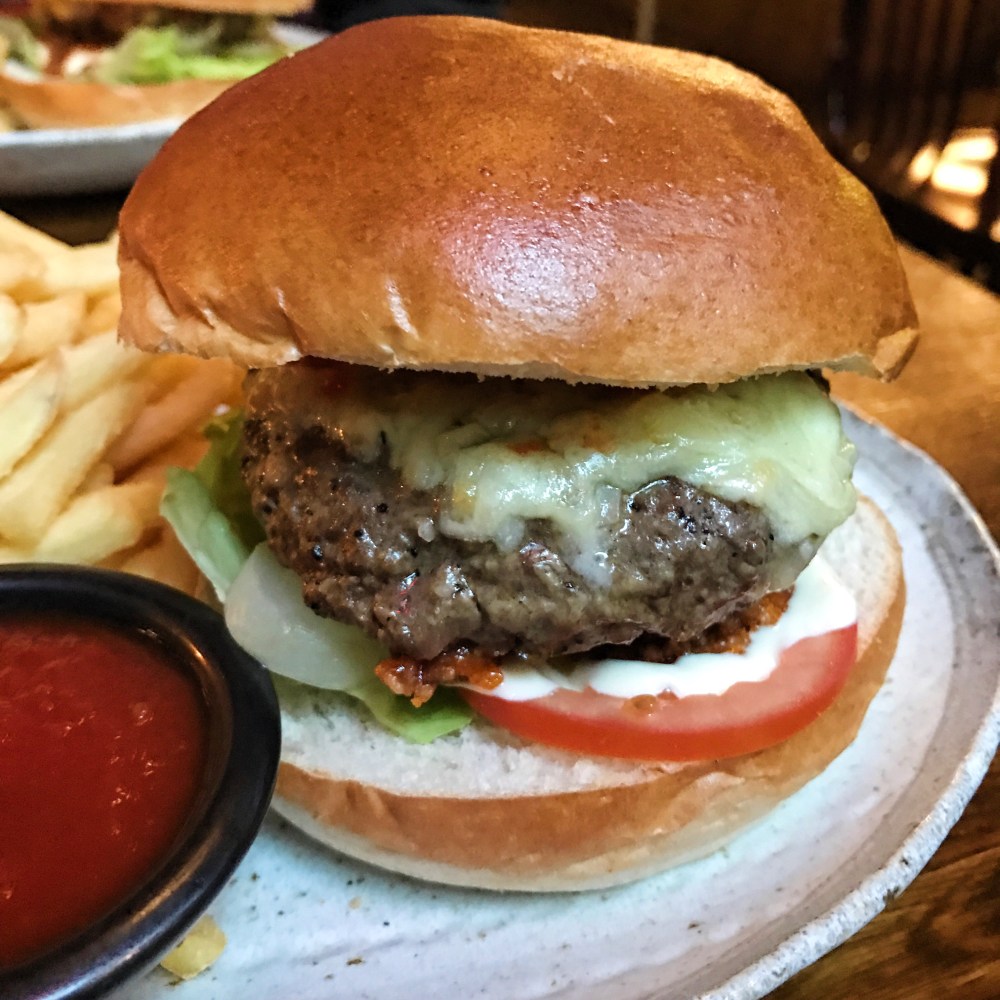 I went for the dry aged beef burger. There’s a few extra topping options available, but I went for it as listed. No nonsense, nothing extra. Patty, cheese, salad and bacon jam on a bun. It came served with skinny fries for £10.