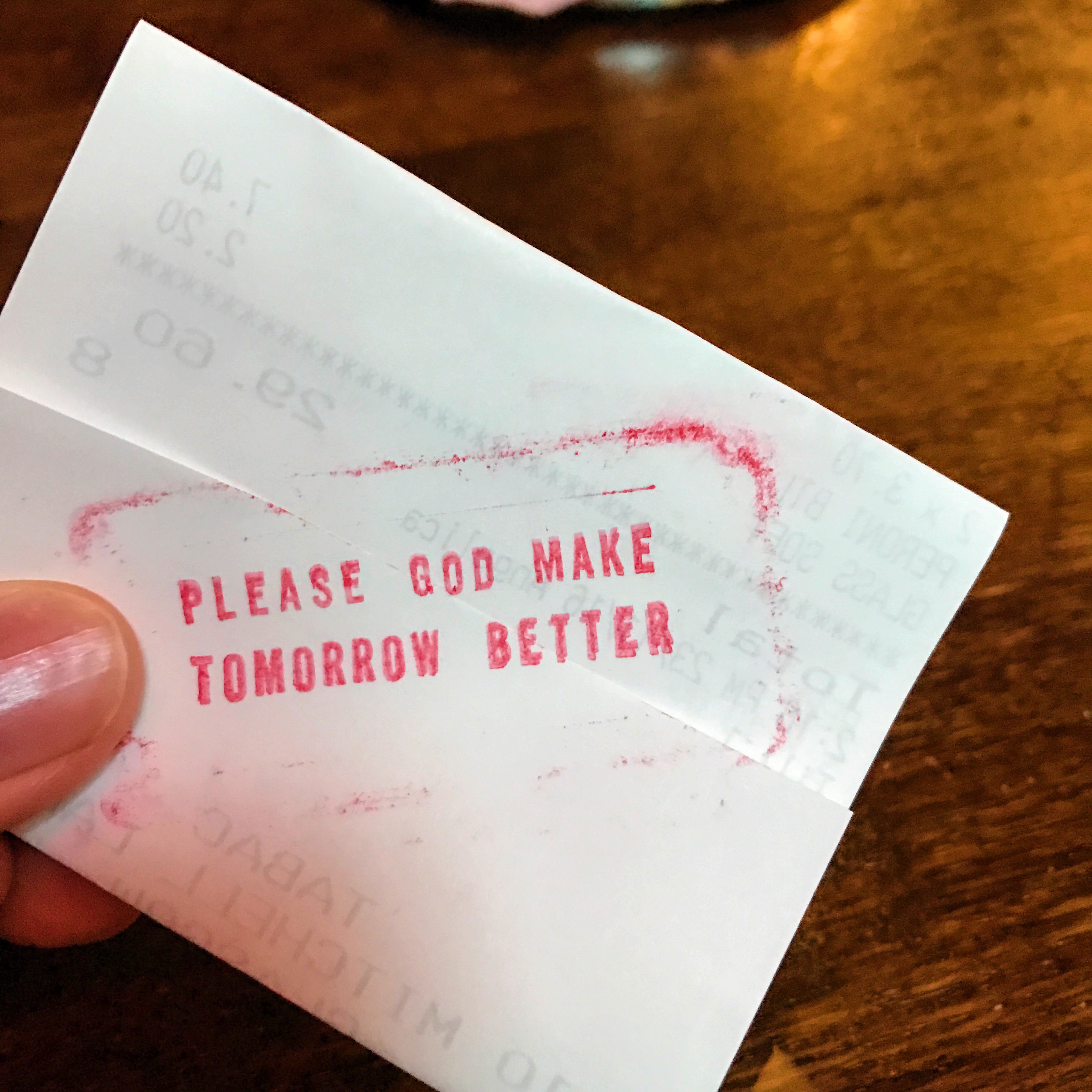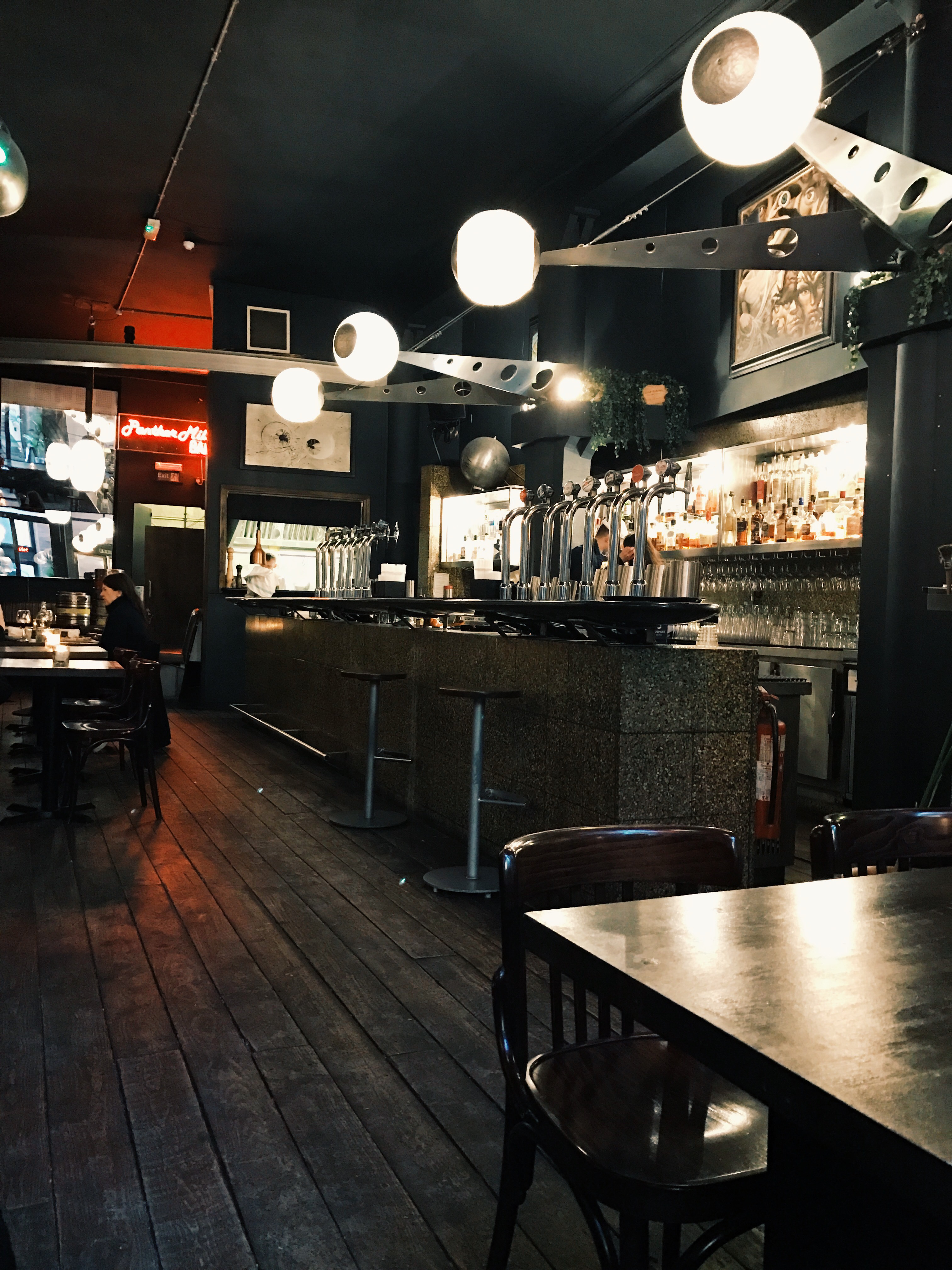 There’s something about Tabac that feels very other-worldly. As I was sitting looking at the menu, I kept thinking about how I could imagine bad guys in movies meeting in a bar like this. Maybe it was how dark the place was or maybe it was the neon ‘Please God make tomorrow better’ sigh. Or maybe I was just so hungry that my mind was wandering. Either way, I like it.